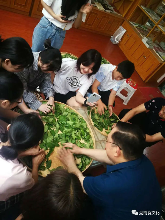 在今年的“中國(guó)文化和自然遺產(chǎn)日”上,湖南省級(jí)非物質(zhì)文化遺產(chǎn)代表性項(xiàng)目——湖南工夫紅茶制作技藝,首次專門面向青少年學(xué)生開放。湖南生物機(jī)電職業(yè)技術(shù)學(xué)院、湖南師大附中雙語(yǔ)學(xué)校、長(zhǎng)沙市砂子塘小學(xué)等學(xué)校的學(xué)生參加了湖南工夫紅茶的體驗(yàn)制作。一盤盤綠油油的茶葉,吸引了大學(xué)生、中學(xué)生和小學(xué)生們的好奇。