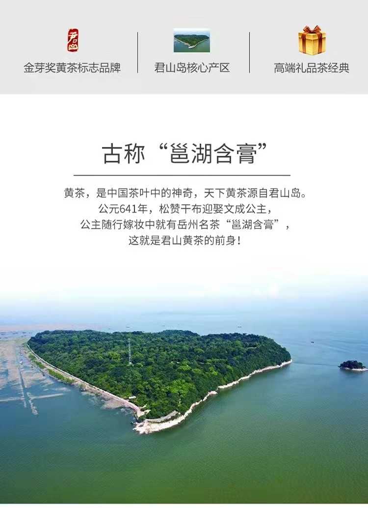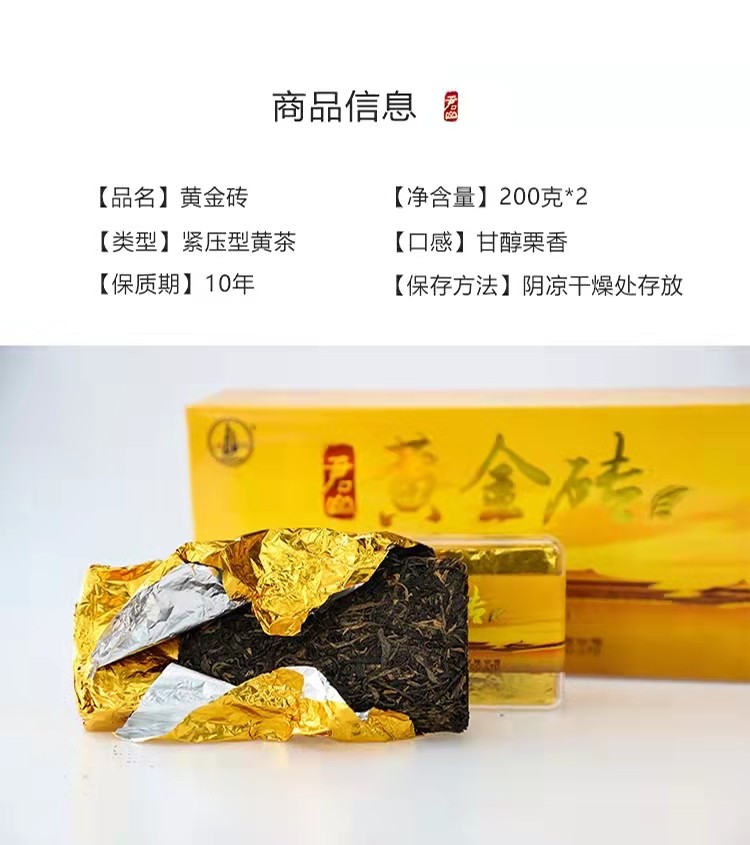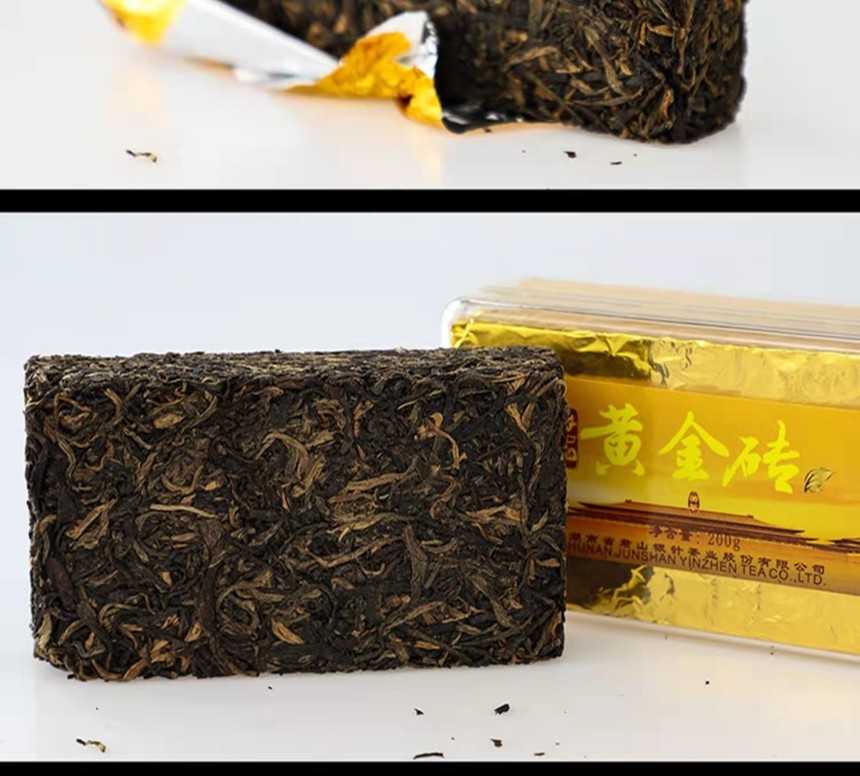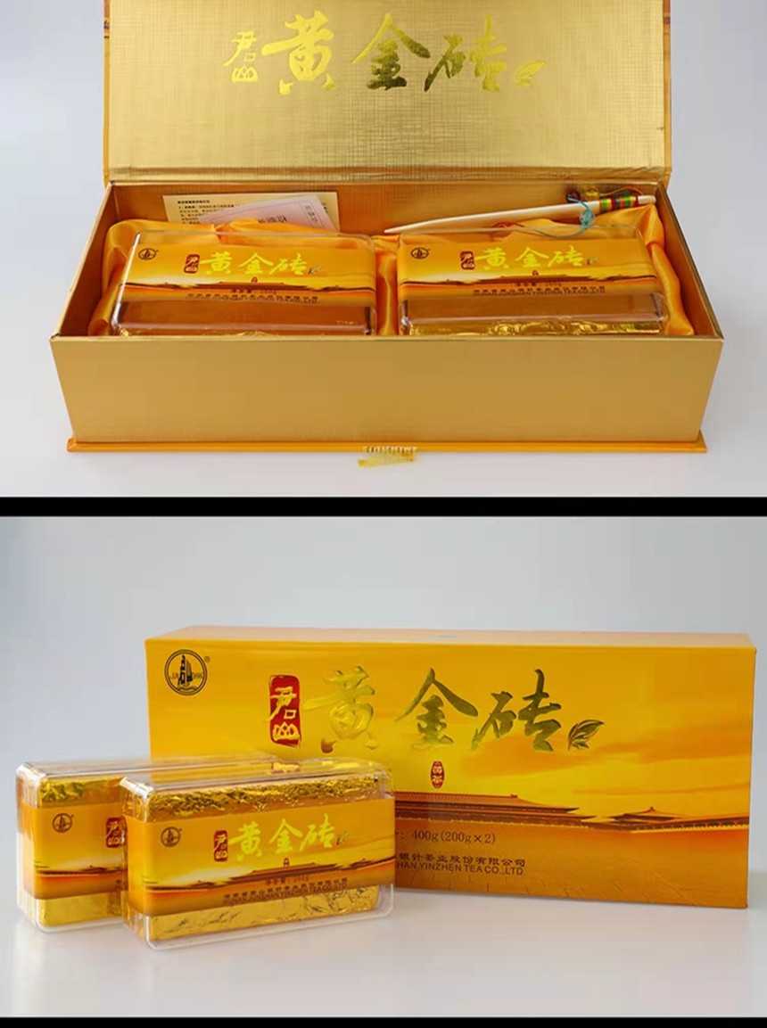 湖南特產(chǎn)茶葉岳陽(yáng)黃茶君山牌緊壓型黃金磚禮,盒400g