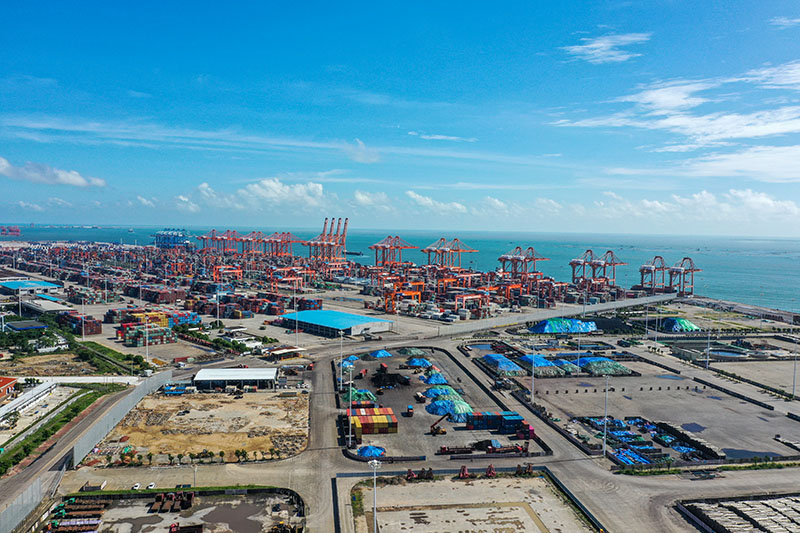 這是2022年8月27日拍攝的位于平陸運(yùn)河出??诟浇谋辈繛掣蹥J州港區(qū)大欖坪作業(yè)區(qū)(無(wú)人機(jī)照片)。新華社記者 曹祎銘 攝